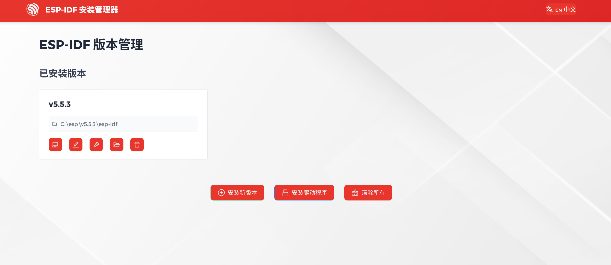 启动 EIM 后,你会看到简洁的主界面。如果这是你第一次使用,界面会提示你安装 ESP-IDF。