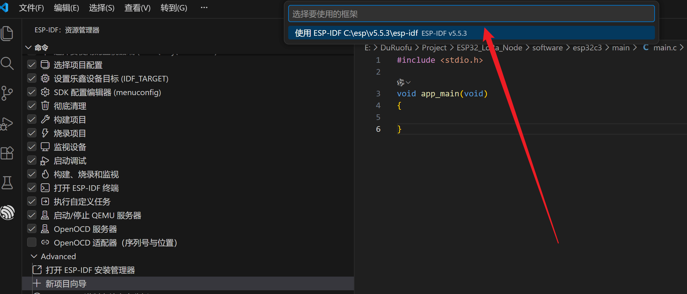 得益于 EIM 的统一管理,VS Code 插件 (v2.0+) 会自动识别通过 EIM 安装的 ESP-IDF 环境。